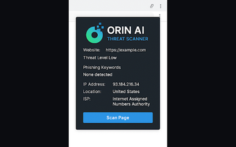 0RION AI adalah ekstensi Chrome yang dirancang untuk meningkatkan keamanan pengguna saat menjelajah internet. Dengan kemampuannya untuk memindai halaman web dan mendeteksi kata kunci yang mencurigakan, ekstensi ini dapat mengidentifikasi risiko phishing dan indikasi penipuan dengan efisien. Fitur utamanya mencakup deteksi kata kunci terkait phishing, evaluasi tingkat risiko berdasarkan kepadatan kata kunci, serta pengambilan informasi IP dan organisasi dari situs yang dikunjungi, menggunakan API ipapi.co tanpa mengumpulkan data pribadi pengguna.